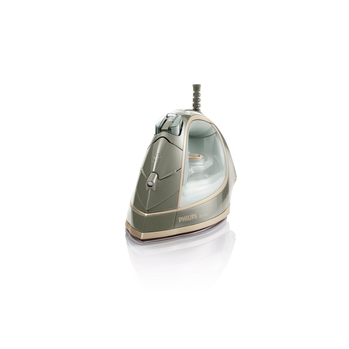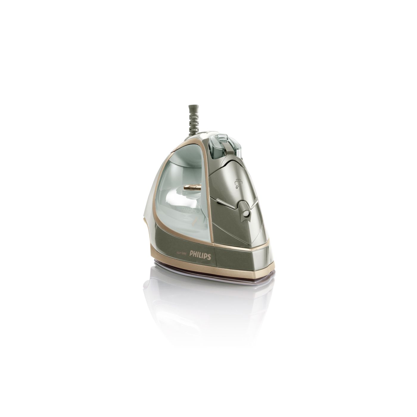 Naparovacia žehlička Philips s kontinuálnym výstupom pary až 40 g/min poskytuje ideálny prísun pary nevyhnutný na efektívne vyžehlenie všetkých záhybov.