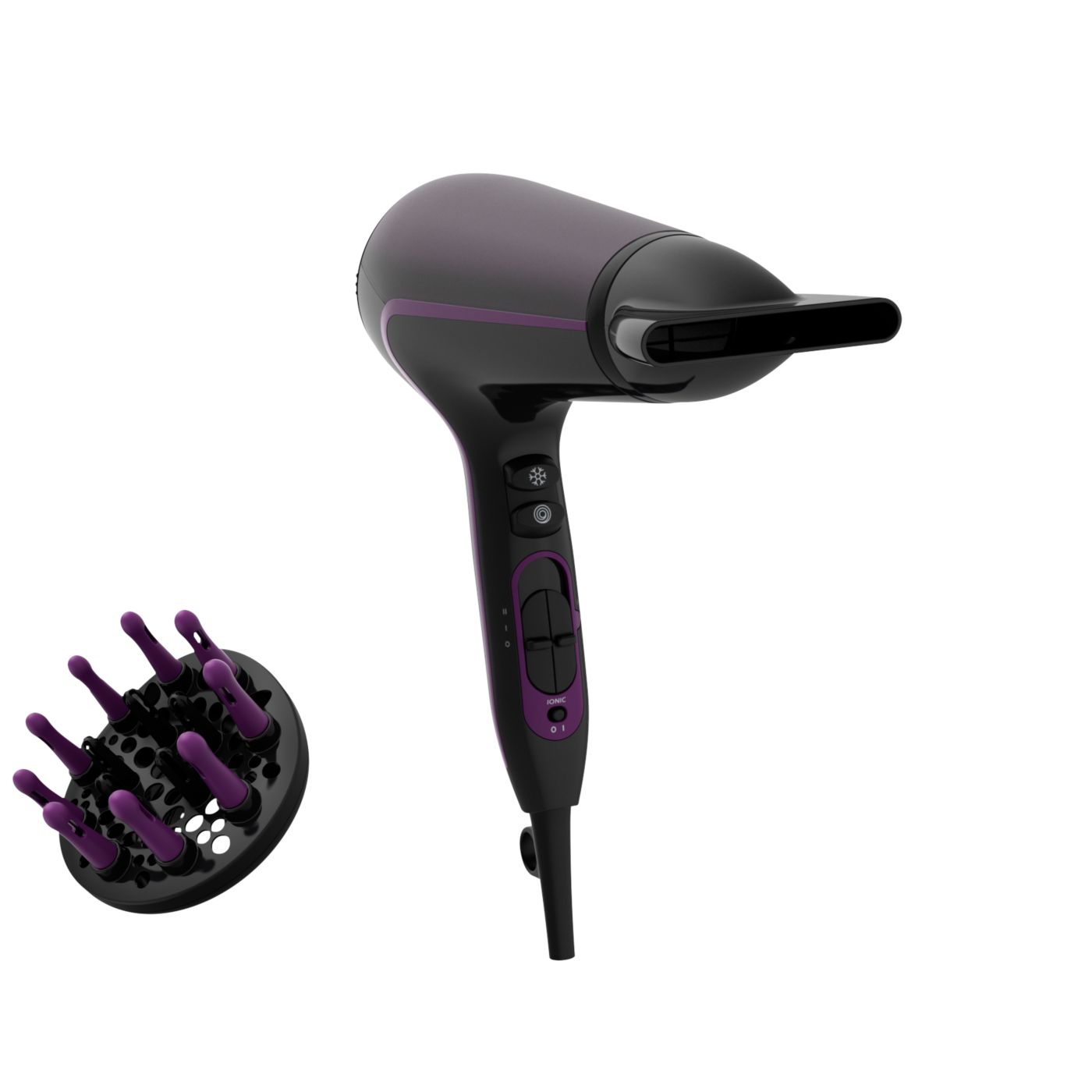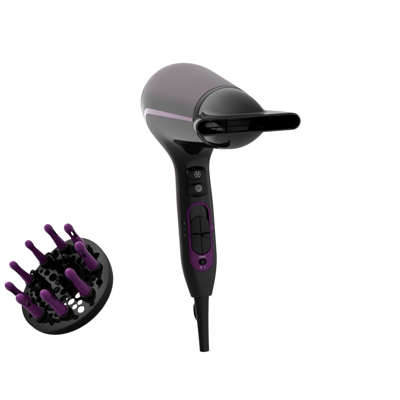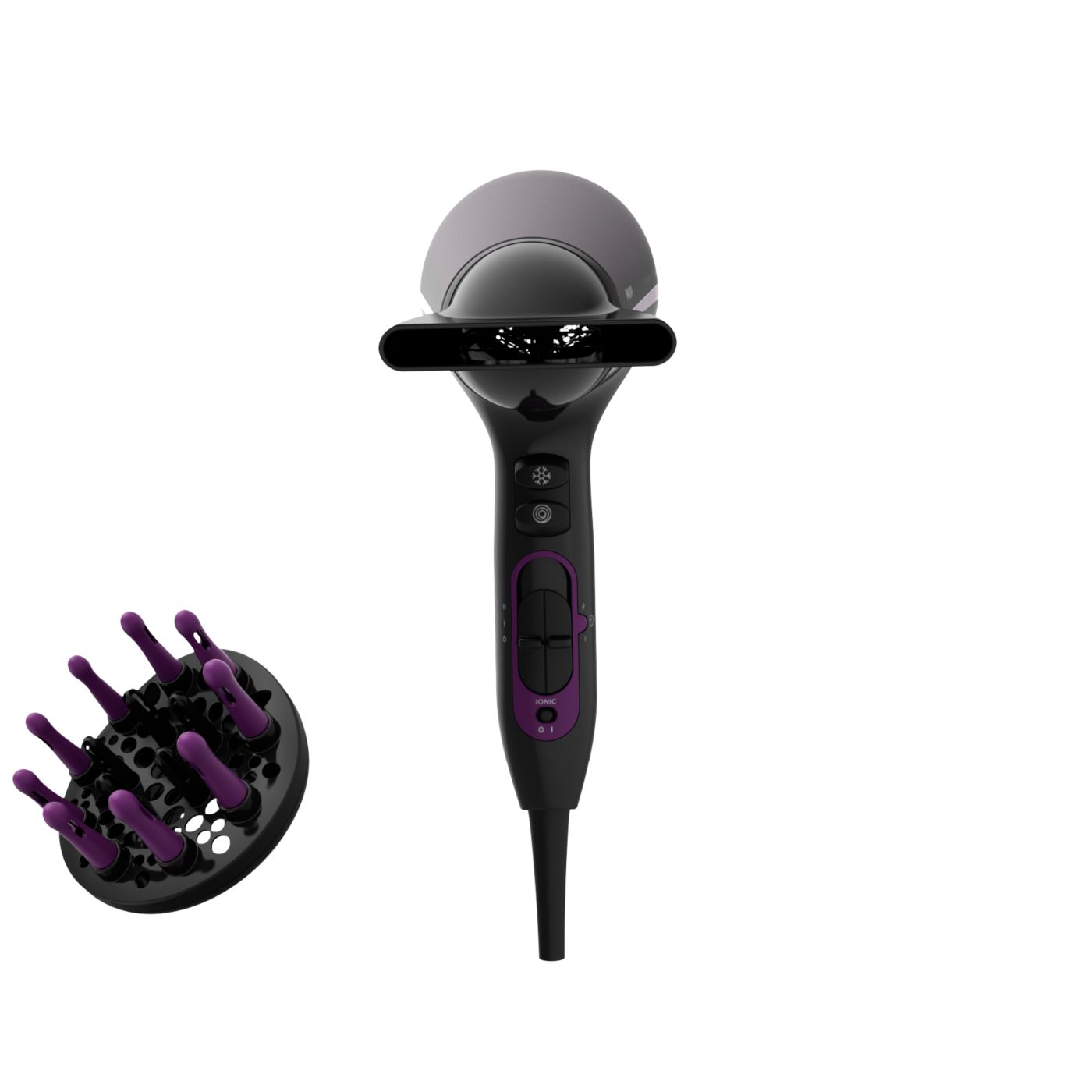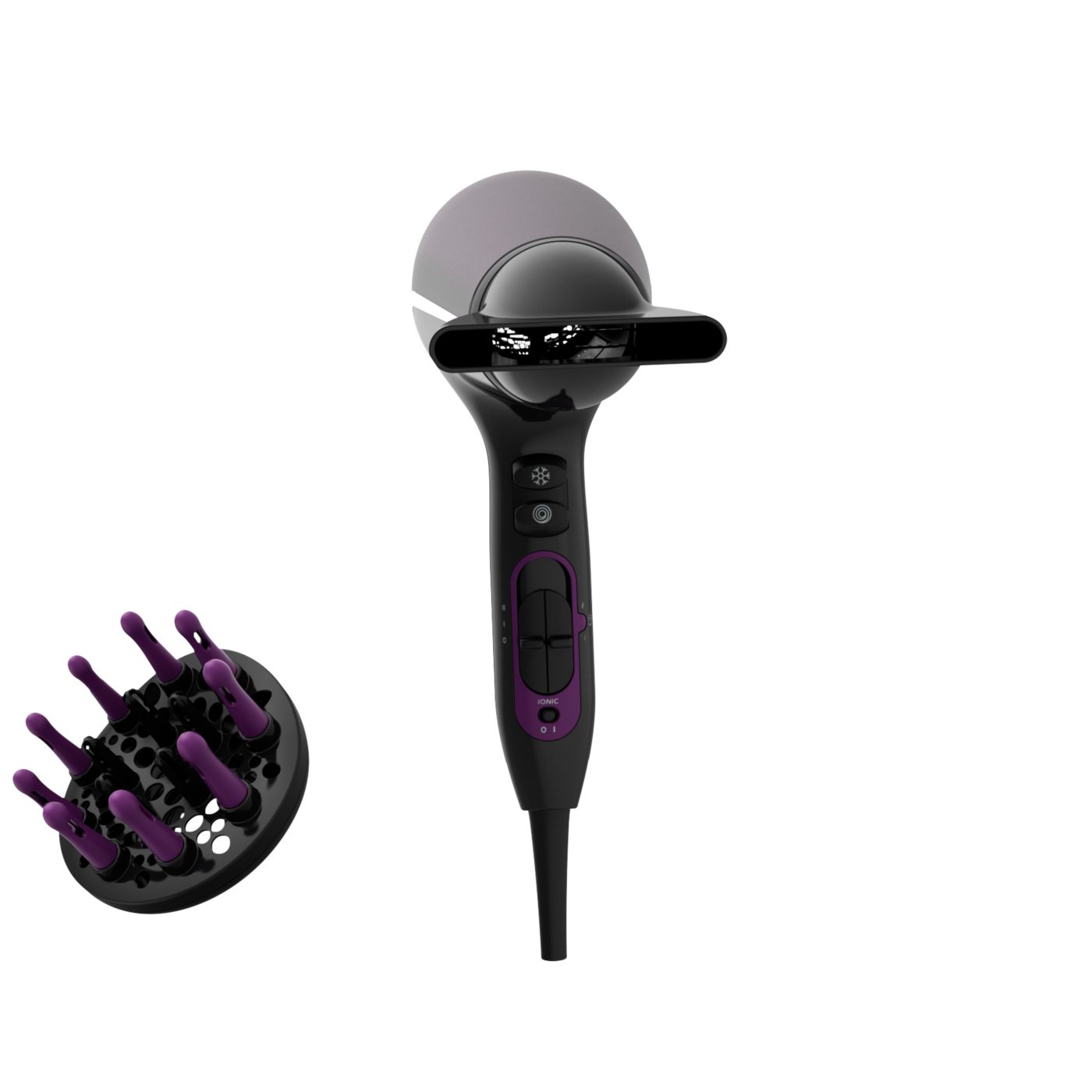 Tento sušič vlasov sa vyznačuje moderným a sofistikovaným prístupom k dizajnu. Jemné a plynulé obrysy a predĺžené tvary nenápadne evokujú ženskosť, zatiaľ čo jemné detaily a vysoko kvalitné materiály a povrchová úprava sú predzvesťou špičkového výkonu zariadenia.