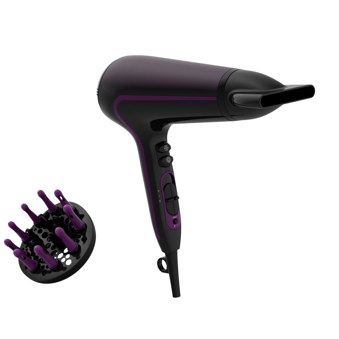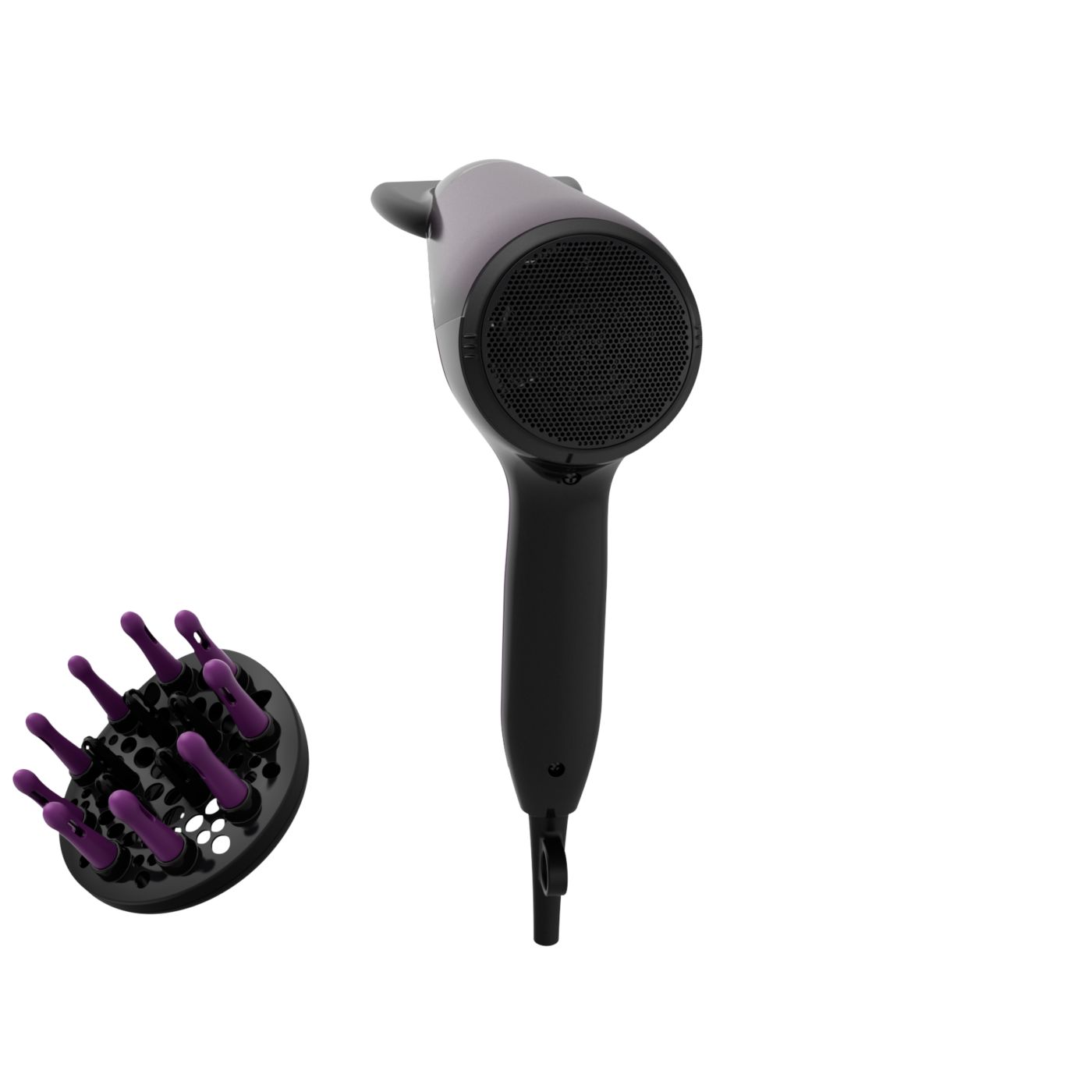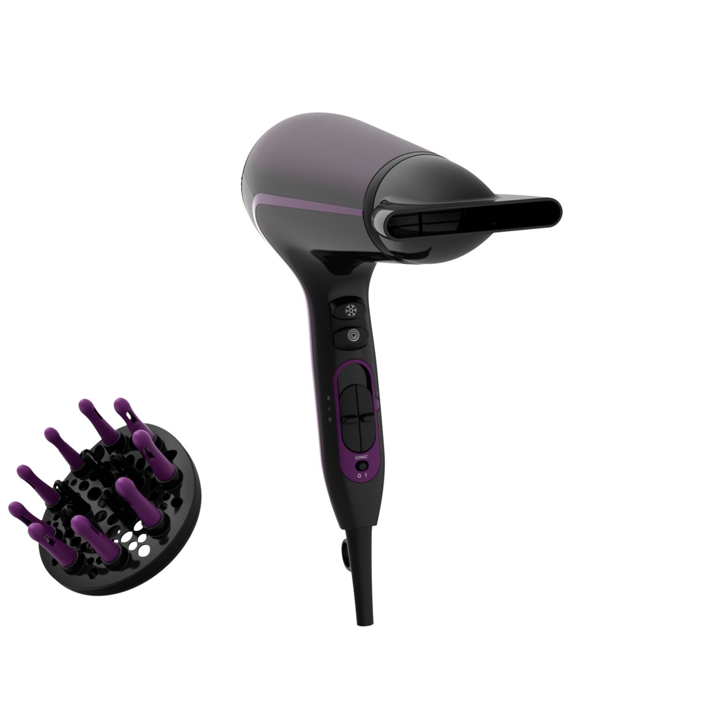 Tento sušič vlasov sa vyznačuje moderným a sofistikovaným prístupom k dizajnu. Jemné a plynulé obrysy a predĺžené tvary nenápadne evokujú ženskosť, zatiaľ čo jemné detaily a vysoko kvalitné materiály a povrchová úprava sú predzvesťou špičkového výkonu zariadenia.