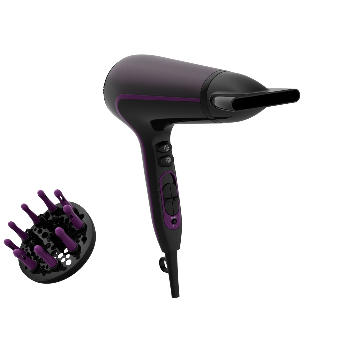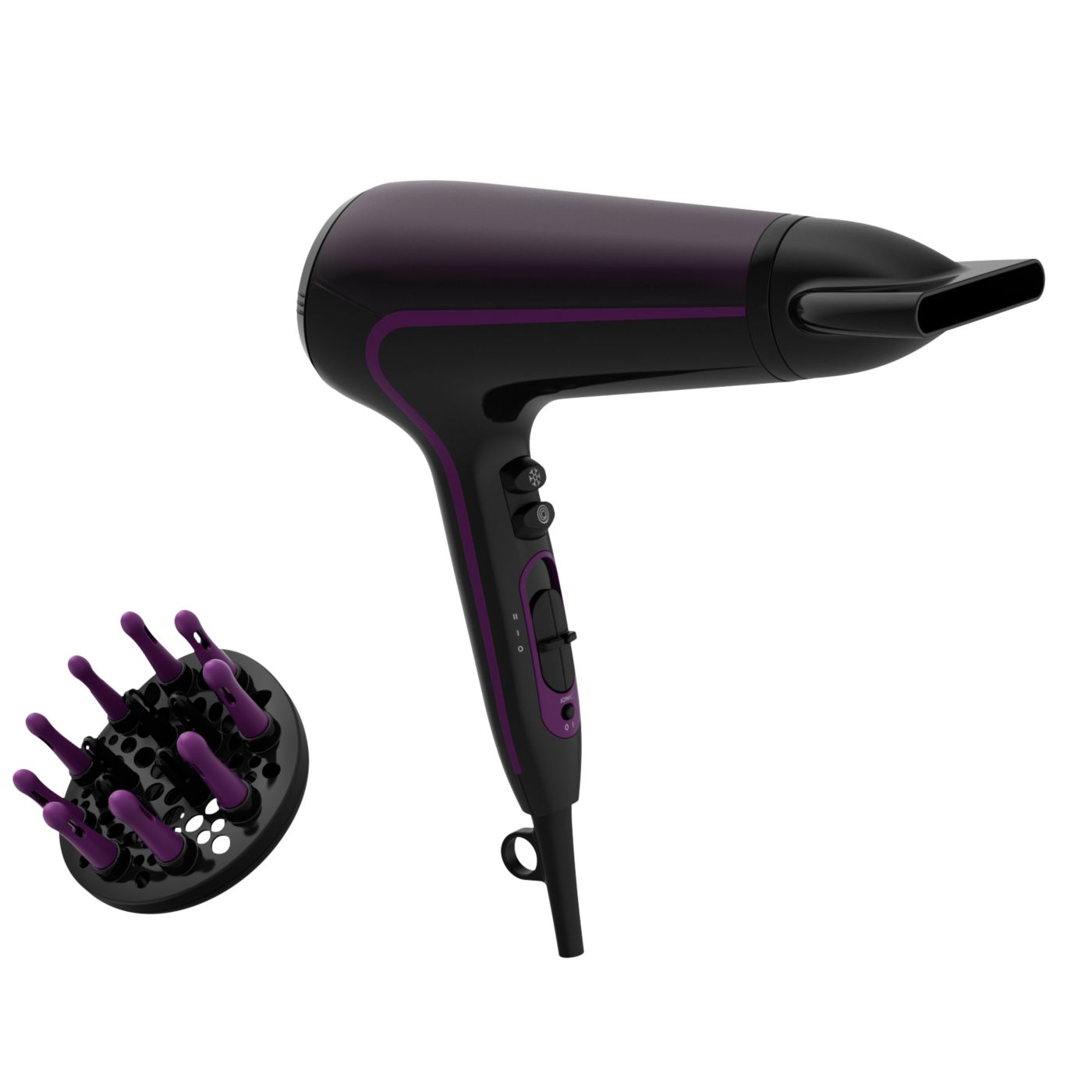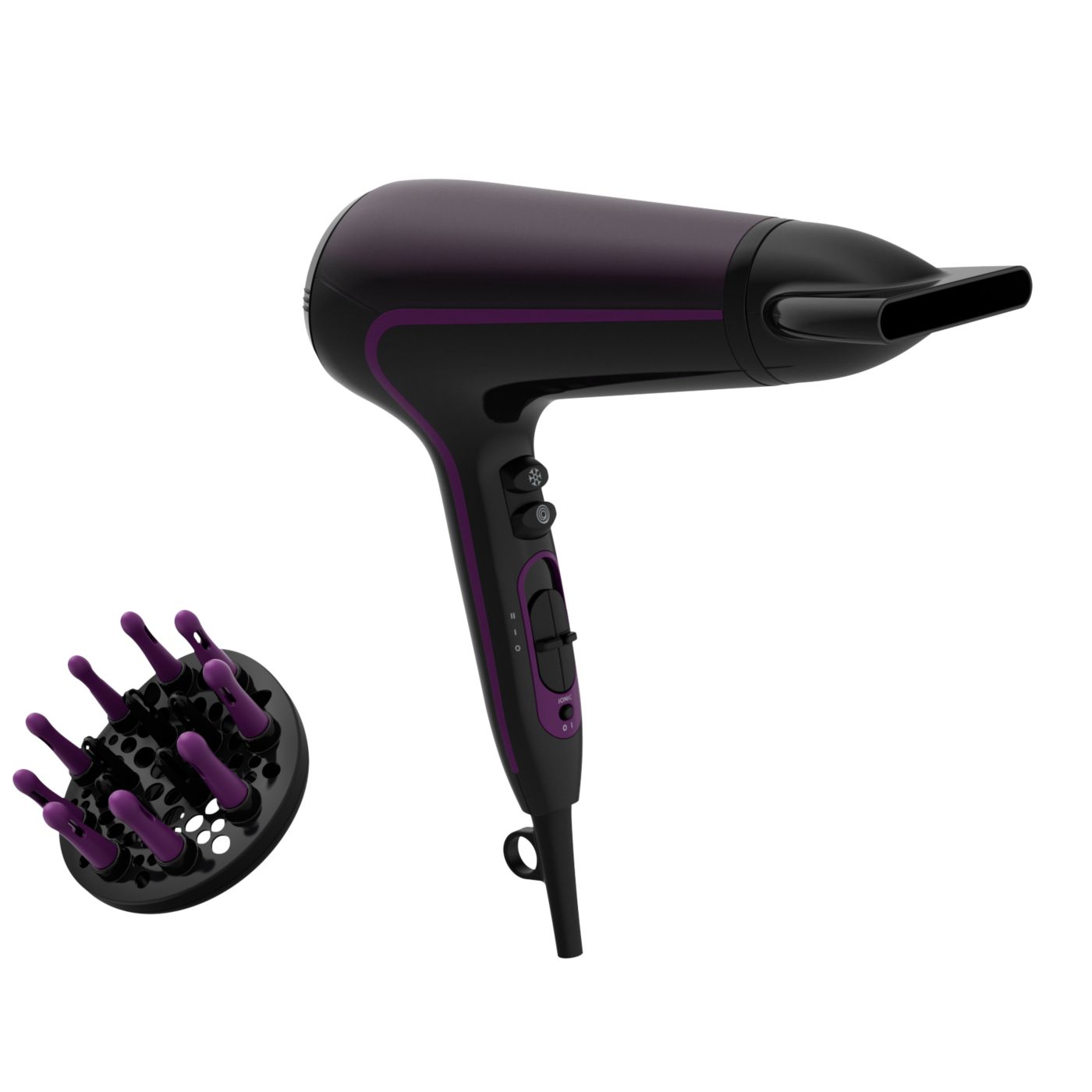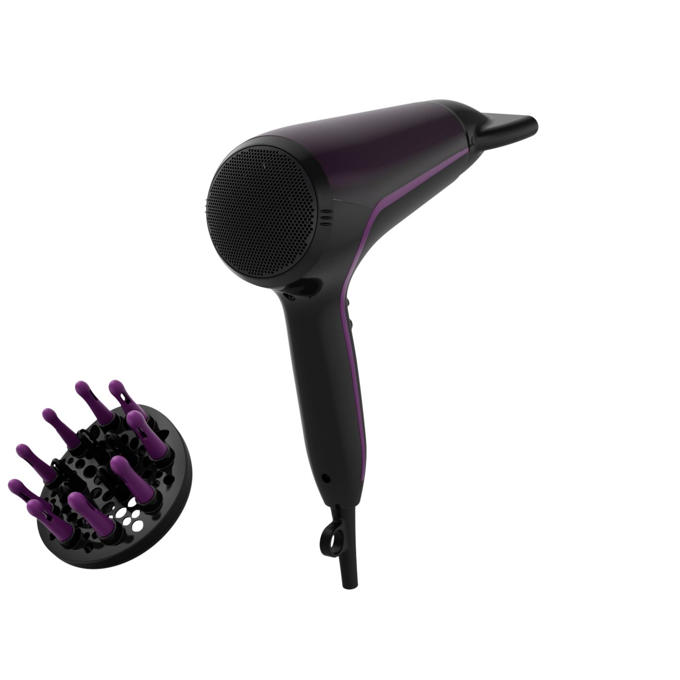 Tento sušič vlasov sa vyznačuje moderným a sofistikovaným prístupom k dizajnu. Jemné a plynulé obrysy a predĺžené tvary nenápadne evokujú ženskosť, zatiaľ čo jemné detaily a vysoko kvalitné materiály a povrchová úprava sú predzvesťou špičkového výkonu zariadenia.