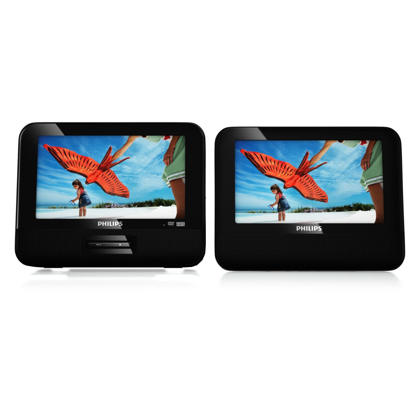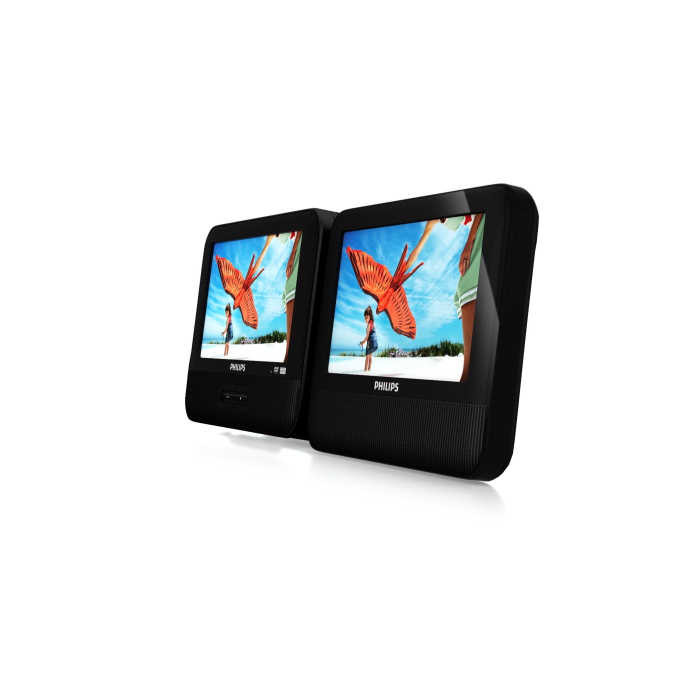 Dodáva sa s praktickým príslušenstvom do automobilu, ktoré zvýši váš zážitok z filmov na cestách. Adaptér do automobilu umožní napájať prenosný prehrávač DVD pomocou nabíjačky do auto zapaľovača, zatiaľ čo pripevňovací remienok umožní pripevniť prehrávač k hlavovej opierke vo vozidle, kde ho môžu sledovať pasažieri. Inštalácia prenosného prehrávača ešte nikdy nebola taká ľahká.