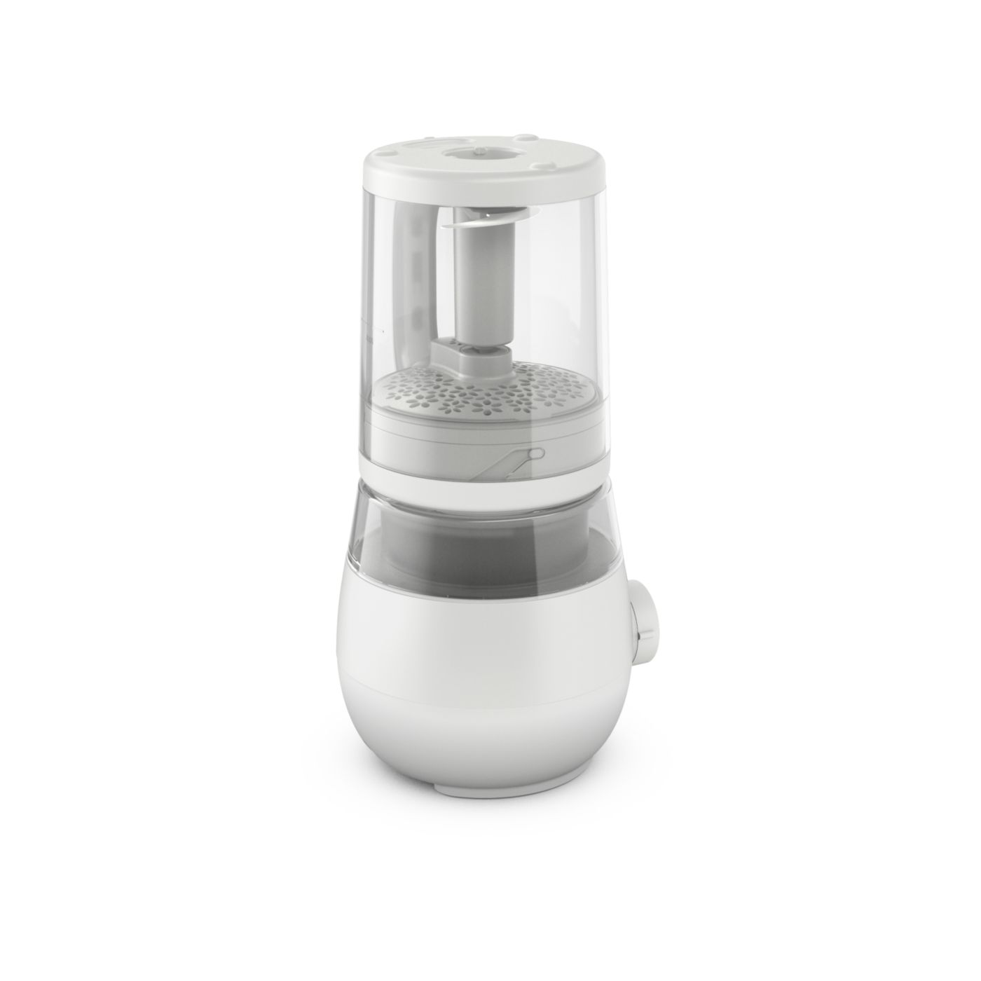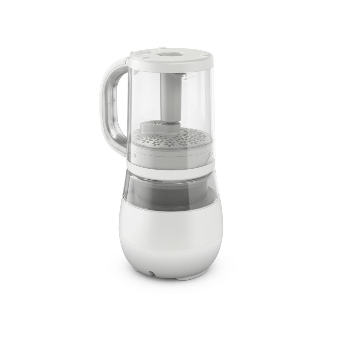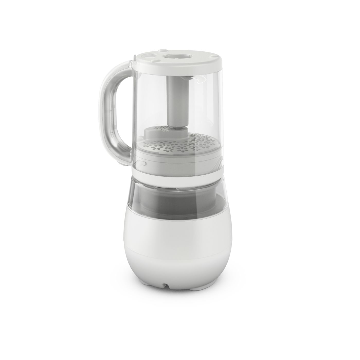 V jedinom pohári máte všetko, čo potrebujete na prípravu výživnej detskej stravy. Po uvarení prísad v pare stačí zdvihnúť pohár, obrátiť ho, zaistiť na mieste a rozmixovať stravu na želanú konzistenciu.