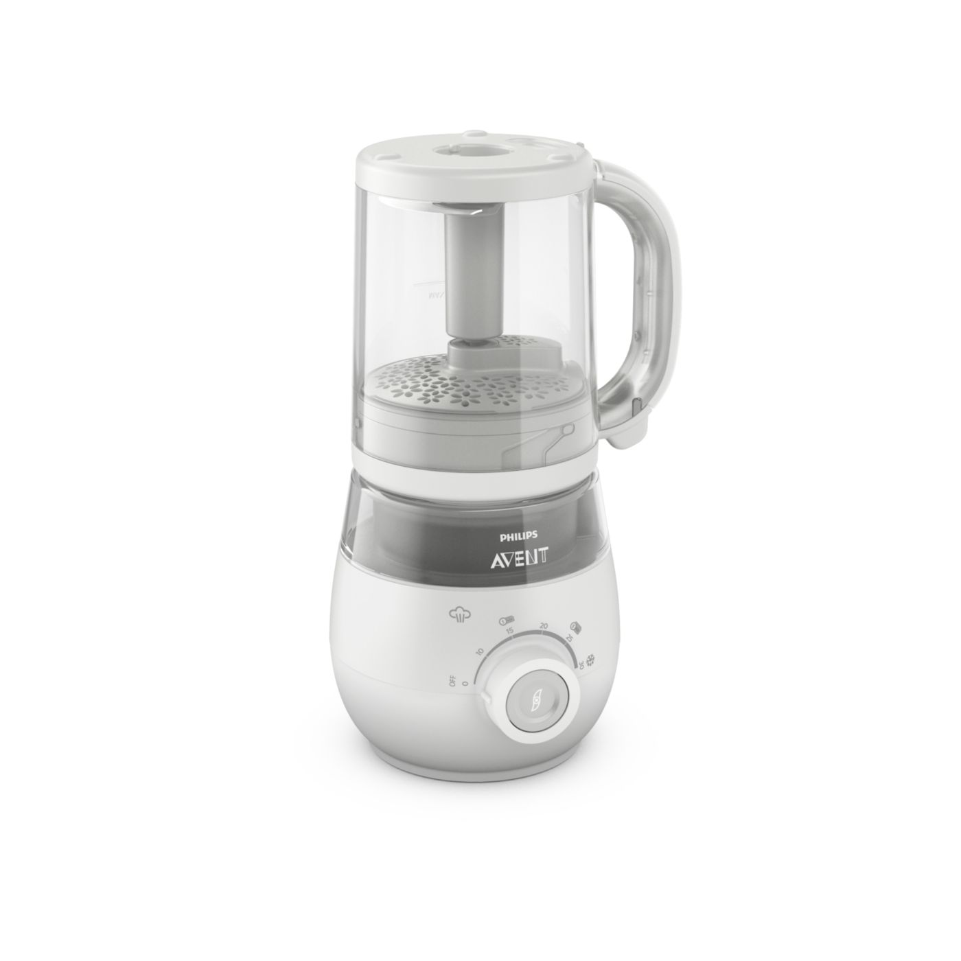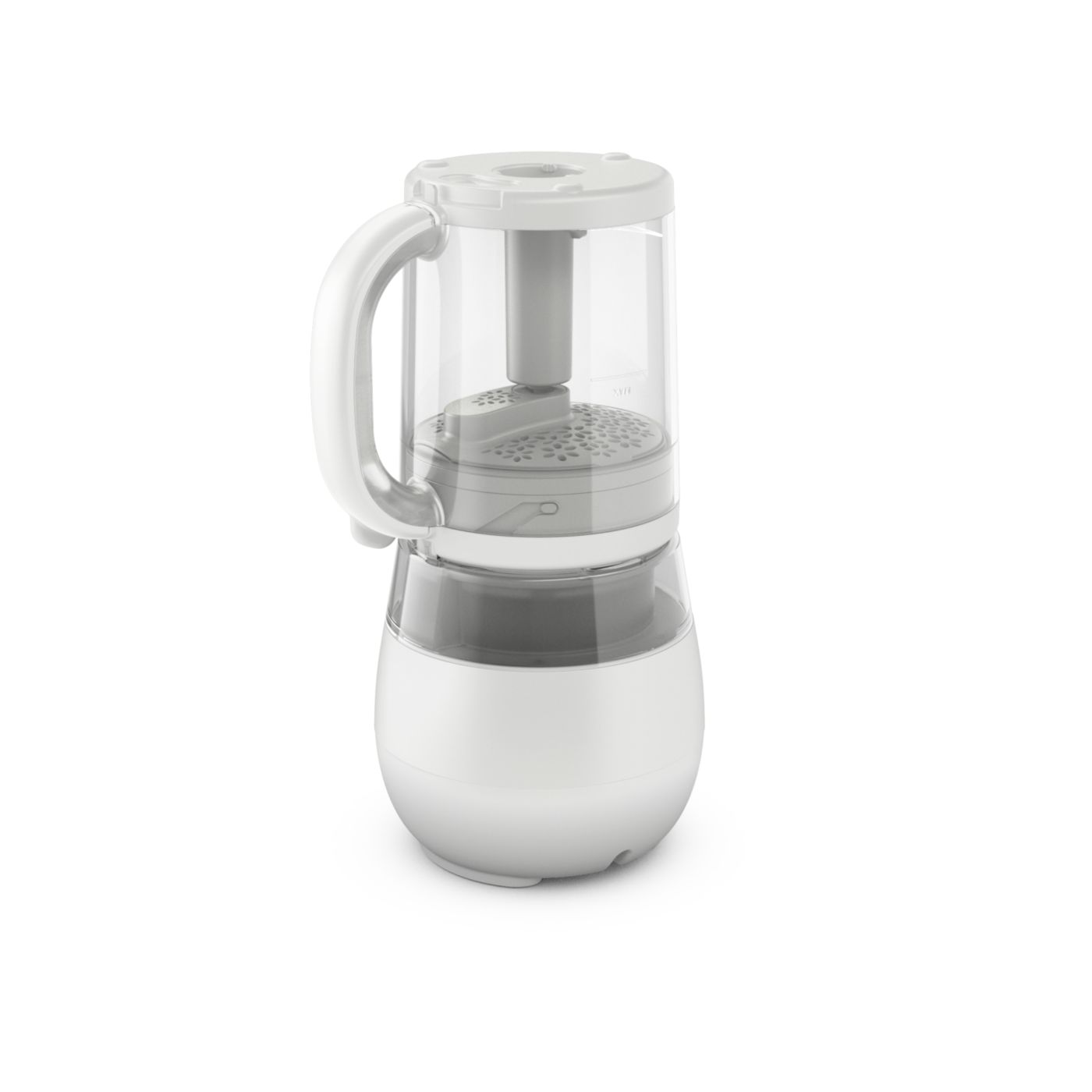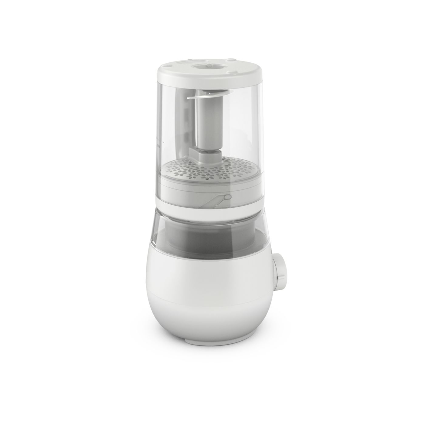V jedinom pohári máte všetko, čo potrebujete na prípravu výživnej detskej stravy. Po uvarení prísad v pare stačí zdvihnúť pohár, obrátiť ho, zaistiť na mieste a rozmixovať stravu na želanú konzistenciu.